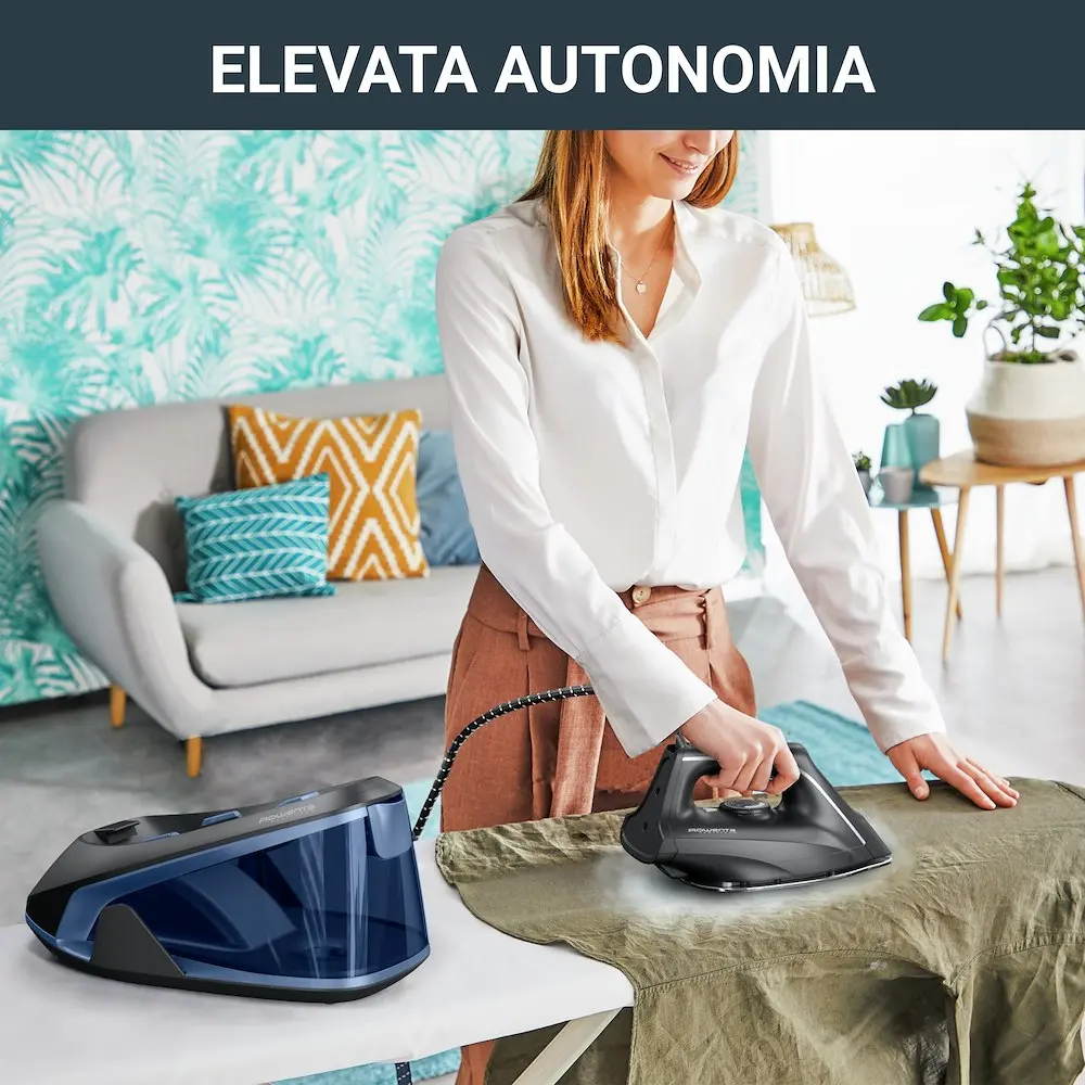 -Potenza del vapore ad alta efficienza: scopri un'esperienza di cura dei tuoi capi ad alte prestazioni, con un generatore di vapore che assicura risultati rapidissimi con la massima facilità -Vapore potente: l'eccezionale potenza del vapore soddisfa tutte le esigenze: erogazione di vapore continua da 110 g/min, getto di vapore da 230 g/min, pressione della pompa a 5,2 bar e un tempo di riscaldamento rapido in soli 2 minuti. -Stirature prolungate: l'ampio serbatoio dell'acqua da 1,4 L è progettato per la massima autonomia e rabbocchi meno frequenti, per una stiratura facile e prolungata. -Struttura compatta ed essenziale: prestazioni impareggiabili in una struttura compatta, per un sistema stirante pratico e con un ingombro inferiore a quello di un foglio A4. -Facile erogazione verticale del vapore: l'applicazione del vapore su capi delicati ed ampi è facilitata dalla funzione vapore verticale, ideale per rimuovere le pieghe dai completi o da altri capi appesi, incluse le tende -Sicurezza e durabilità : massima sicurezza grazie al sistema di spegnimento automatico e manutenzione anticalcare facile grazie al sistema Flush anticalcare. -Risparmio energetico: la modalità Eco ad alte prestazioni consente un risparmio energetico del 25% rispetto a quando il generatore di vapore è impostato sulla modalità massima, offrendo comunque una cura dei capi adatta a tutti i normali indumenti.