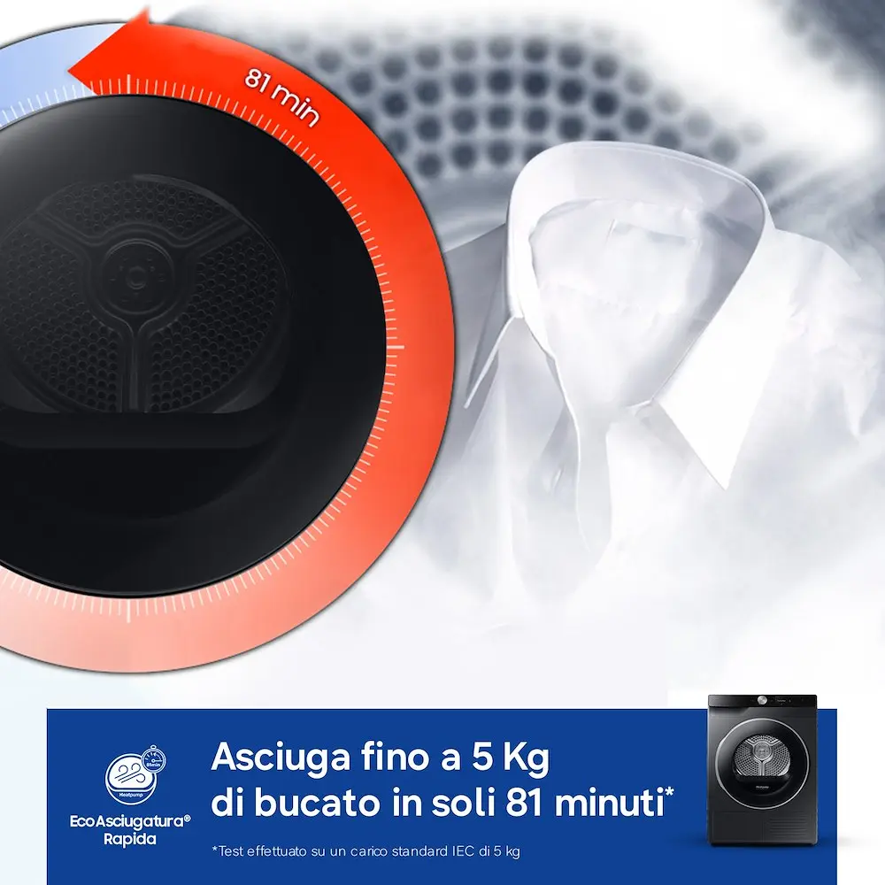 OPZIONI Fine Programmata • Luce Interna • Asciugatutto con segnale acustico • Stiro Facile (Antipiega) • Selezione tempo • Selezione asciugatura 4 livelli