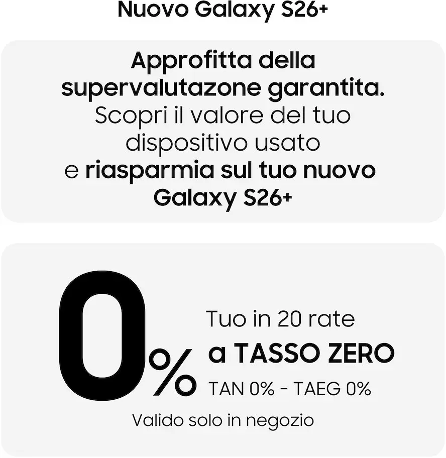 Galaxy AI (Assistente chiamata, Assistente alla scrittura, Interprete, Assistente note, Assistente trascrizione, Assistente web, Assistente foto, Creative Studio, Regola audio, Sfondo Meteo, Now brief, Now nudge, Punti salienti notifiche, Assistente alla salute) Samsung DeX App Galaxy (Wallet, Find, Samsung Cloud, Store, Global Goals, News, Kids, Health, Members, Notes, TV, Smart Switch, Internet, Modalità e routine, Galaxy Avatar, Galaxy Wearable, Gaming Hub, Game Booster) AI (Gemini, Perplexity, Bixby) Samsung Ecosystem (SmartThings, Controllo multiplo, Condivisione fotocamera, Condivisione archiviazione, Chiamata e testo su altri dispositivi , Commutazione automatica Buds, Continua su altri dispositivi (Samsung app continuity), Dispositivi vicini)